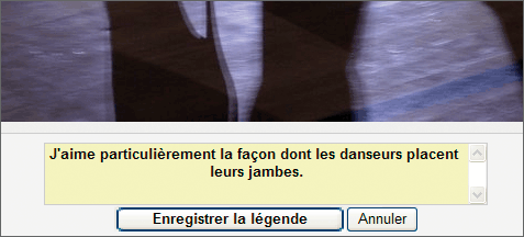 Saisissez un texte bref, puis cliquez maintenant sur Enregistrer la légende. Revenez à la photothèque en cliquant sur Afficher l’album.