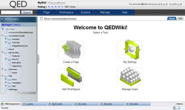 QEDWiki, acronyme de Quick and Easily Done Wiki, facilite la création de pages Web et tableaux de bord en mash-up. A l’instar de Popfly, l’application est conçue pour permettre une création visuelle des mash-up