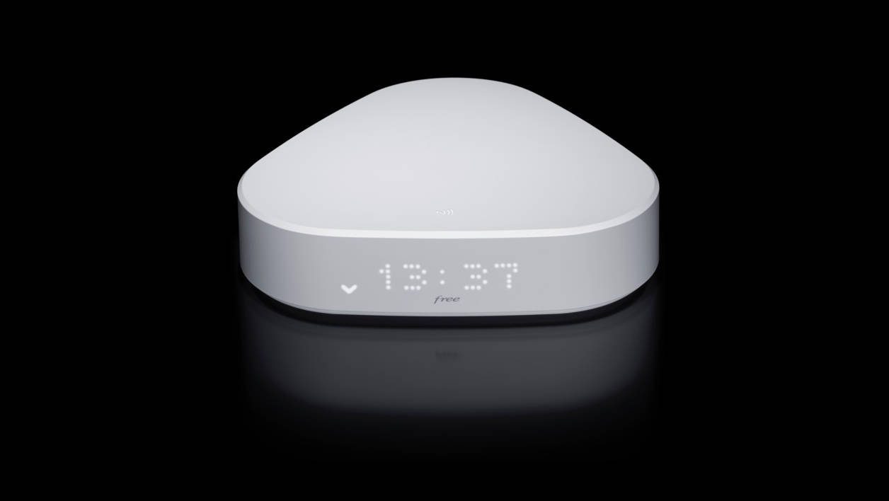 - Connectiques réseaux : module Wi-Fi n/ac avec deux couples d’antennes (2×2) compatibles MU-MIMO, compatible Bluetooth 4.2. Présence d’un lecteur NFC et support de la recharge sans-fil Qi, pour les smartphones compatibles et l’une des deux télécommandes Free fournies.