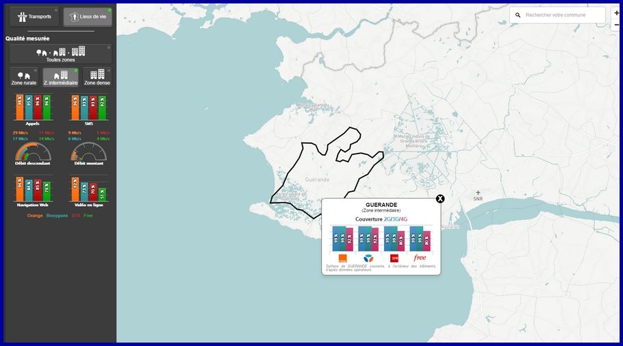 Un outil cartographique permet, par ailleurs, de visualiser les résultats des mesures pour chaque commune en 2G, 3G et 4G.