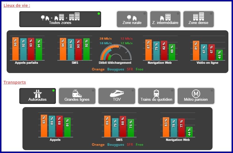 Vitesse de chargement des pages ou débit disponible selon les différentes zones d’habitations ou sur les grands axes routiers et ferroviaires, qualité de l’appel ou rapidité de transmission d’un SMS, l’Arcep a comparé les réseaux des quatre opérateurs sur une importante variété de critères.