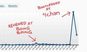 Grand bien lui a pris d’initier le dialogue avec les « pirates ». Le lendemain, Lieber publie un billet indiquant qu’il livre sa bande dessinée gratuitement en ligne, avant de dévoiler un graphique montrant ses courbes de ventes sur Etsy, le site où est commercialisé l’ouvrage… Et celles-ci ont littéralement explosé ! A tel point qu’il a annoncé quelques heures plus tard qu’il y aurait des retards dans certaines livraisons.