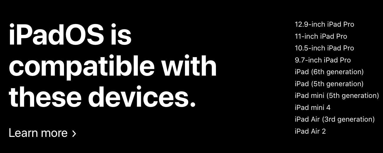 Du côté de l’iPad, iPadOS (qui est en fait iOS 13 avec un nom différent) supporte tous les iPad Pro. En revanche, il faut avoir au minimum un iPad de 5ème génération, un iPad Air 2 ou un iPad mini 4 pour faire tourner la nouvelle mise à jour.
