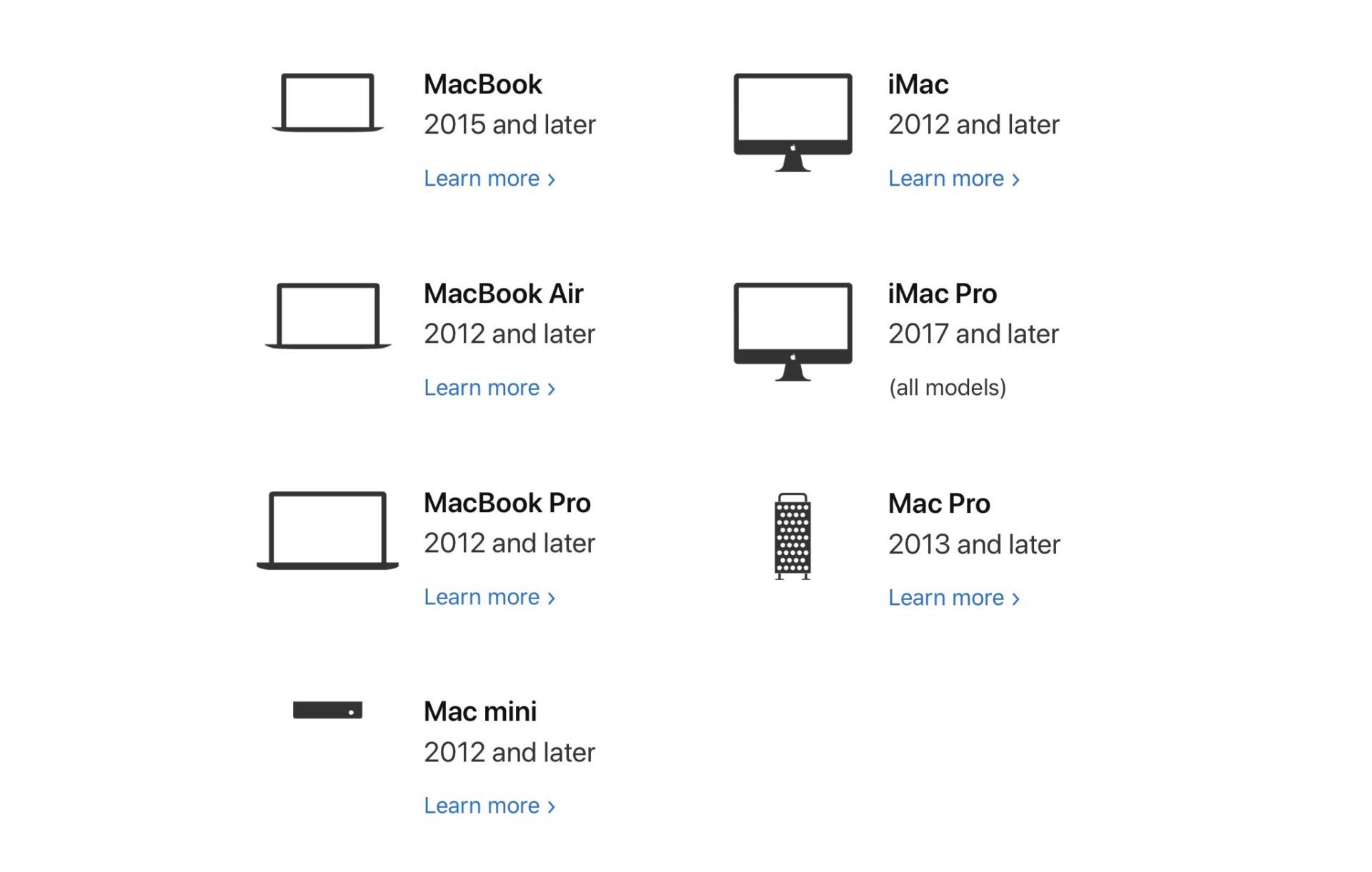 Du côté des Mac, tous les ordinateurs compatibles avec Mojave sont compatibles avec Catalina. RAS donc.