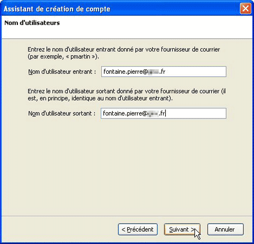 5 ?” Il vous est ici demandé d’entrer l’identifiant mail fourni par votre FAI ou prestataire de service. Il s’agit généralement du préfixe de l’adresse électronique, ce qui précède le @. Par exemple, robert.dupont, si l’adresse est [email protected]. Toutefois, pour certains services, il est nécessaire d’entrer l’adresse en entier. Une fois encore, ces informations vous sont fournies par le gérant de votre compte de messagerie. Quoi qu’il en soit, l’identifiant est le même pour les deux champs.