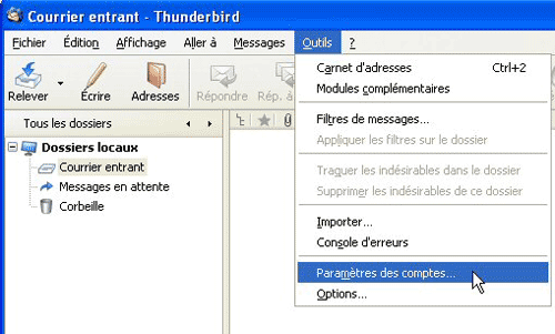 8 ?” Il reste à affiner un peu les réglages de votre compte, à savoir définir la fréquence à laquelle Thunderbird vérifie qu’un nouveau courriel est arrivé et aussi la gestion du stockage des mails sur le serveur. Allez dans le menu Outils de Thunderbird et choisissez Paramètres des comptes… Une fenêtre s’ouvre.