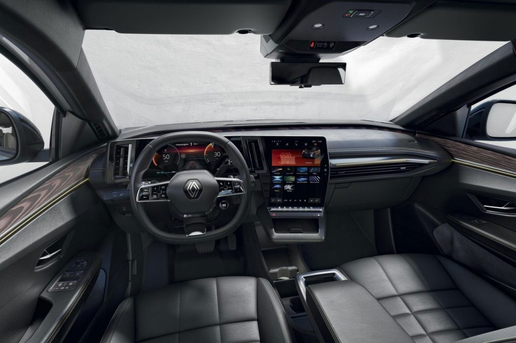 A l’intérieur, les ingénieurs de Renault ont fait un travail considérable pour dépoussiérer l’habitacle des dernières générations. Le nouvel environnement de bord se nomme « OpenR » et aurait été développé en partenariat avec Google. Le tout est formé par l’assemblage de deux écrans de 12,3 et 12 pouces (l’écran média existe en version 9 pouces sur l’entrée de gamme). Comme chez Mercedes avec l’Hyperscreen, les deux écrans semblent former un même ensemble puisqu’ils sont dissimulés sous la même dalle en verre en forme de « L » renversé.