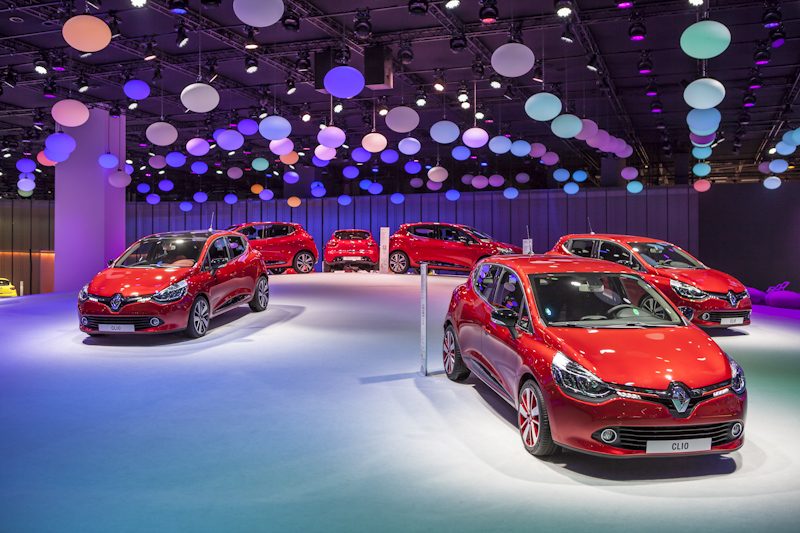 Dans un Mondial plutôt morose, Renault ose la couleur sur son stand avec un florilège de Clio rouges et jaunes ! Signe de l’optimisme retrouvé ? Il faut dire qu’avec sa ligne due à Laurens van den Acker, la nouvelle Clio surprend et séduit. Rompant radicalement avec le style plutôt consensuel des trois générations précédentes, la citadine en profite pour se donner des airs de grande voiture. Incontestablement plus séduisante, elle se passe de version 3-portes mais dissimule ses poignées de portes arrière dans les montants latéraux.