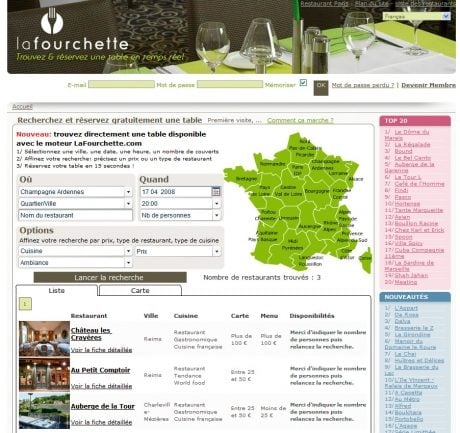 Ce site est une centrale de réservation et non un guide des bonnes tables. Cela dit, le moteur de recherche permet de trouver un restaurant selon divers critères comme le prix, l’ambiance, le type de cuisine et les disponibilités. La