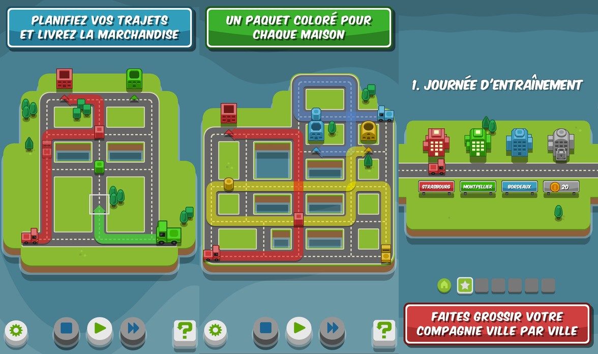 Livrez vos colis aux adresses indiquées en évitant toutes collisions entre vos chauffeurs routiers dans ce jeu de puzzle coloré.