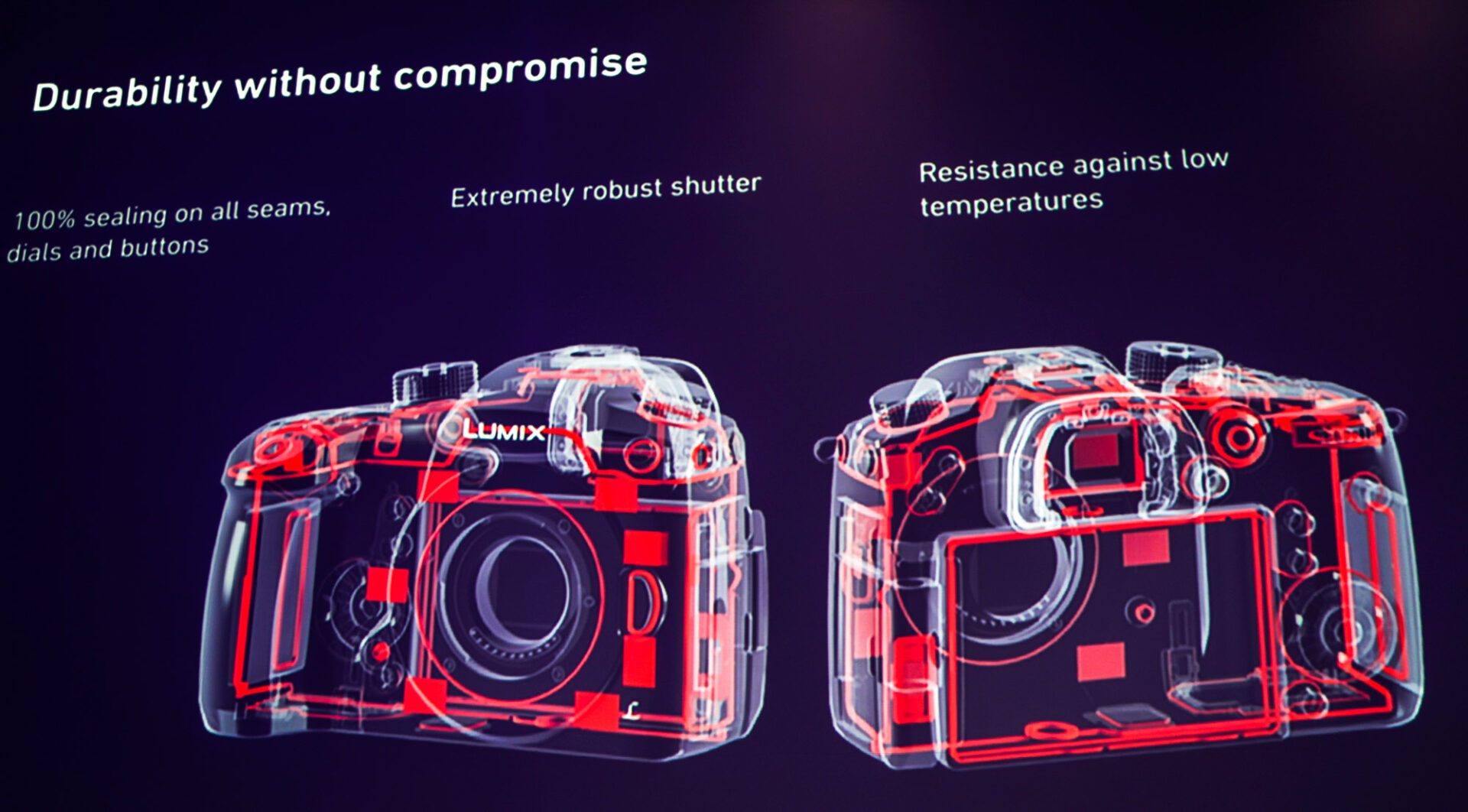 L’appareil est un gros « reflex » avec des garanties anti-ruissellement (eau), anti-poussière et anti-froid (jusqu’à -10°C garanti, -40°C testé). Forfanterie ? Que nenni : pour avoir testé non seulement le GH5 mais aussi le G9, il est clair qu’à l’heure actuelle ce sont les deux hybrides les plus solides du marché. Avec ses S1 et S1R, Panasonic n’a fait que faire grossir le boîtier et maintenu le même niveau de solidité, voire plus selon les dires d’un ingénieur qui nous a garanti que « toutes les jointures mais aussi les lignes de constructions internes bénéficient de joints d’étanchéité ». Vivement le test de terrain !