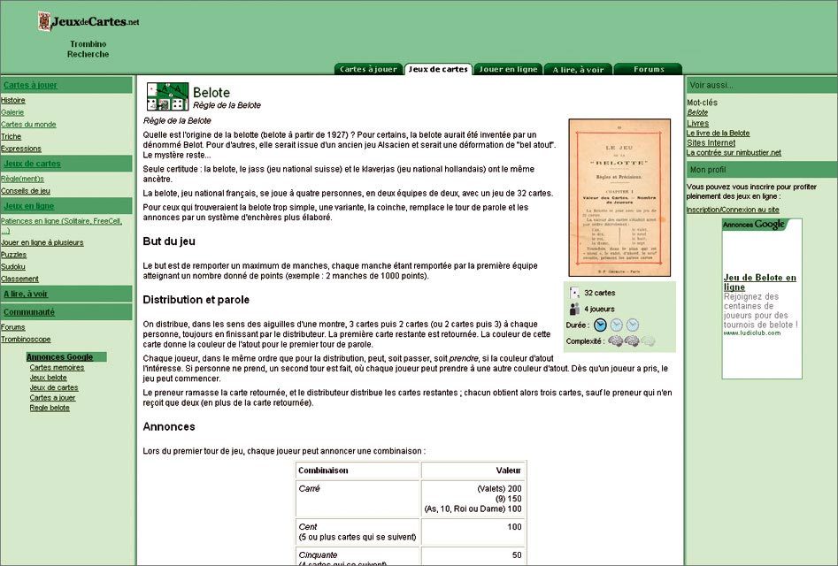 de cartes sont répertoriées : belote, tarot, poker, crapette, barbu, etc. Un moyen sûr de mettre tout le monde d’accord, ou de découvrir des jeux méconnus. Avec, en prime, la possibilité de jouer en ligne (patience, sudoku, puzzles, jeux de