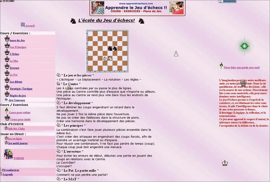 Apprendreechecs.com a construit sa méthode d’apprentissage, avec des cours d’initiation pour enfants, débutants, ou initiés. Du déplacement des pions sur l’échiquier aux différentes