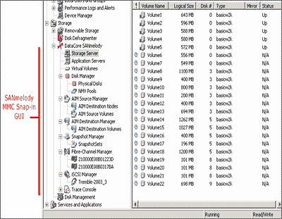 devient compatible avec MPIO de Microsoft pour assurer la bascule automatique entre un serveur de disques primaires et son miroir en cas d’incident, même si le retour en arrière n’est pas encore automatisé.SANmelody est peu onéreux, la version de base coûte environ 1 000 ? HT, son prix peut passer à plus de 20 000 ? avec les nombreuses options. Il faut y ajouter le coût du matériel, un serveur sur lequel