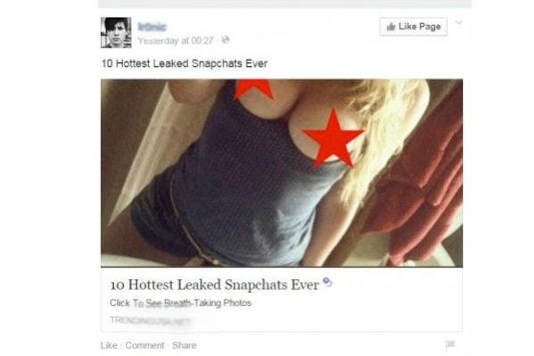 Le spécialiste de la sécurité informatique met en garde contre une campagne de spam diffusée sur Facebook et qui promet les « 10 snapchats (volés, NDLR) les plus sexy ». Plusieurs dizaines de sites malveillants sont désormais bloqués par la suite de sécurité de l’éditeur. Cette « attaque », qui vise essentiellement un public masculin, permet de récolter des adresses mail ou des numéros de téléphone. Elle galope également en tête des trending topics et « un des sites diffusant ce contenu affichait déjà plus de 75 000 fans Facebook et pas loin de 5 000 abonnés Twitter », avance BitDefender.