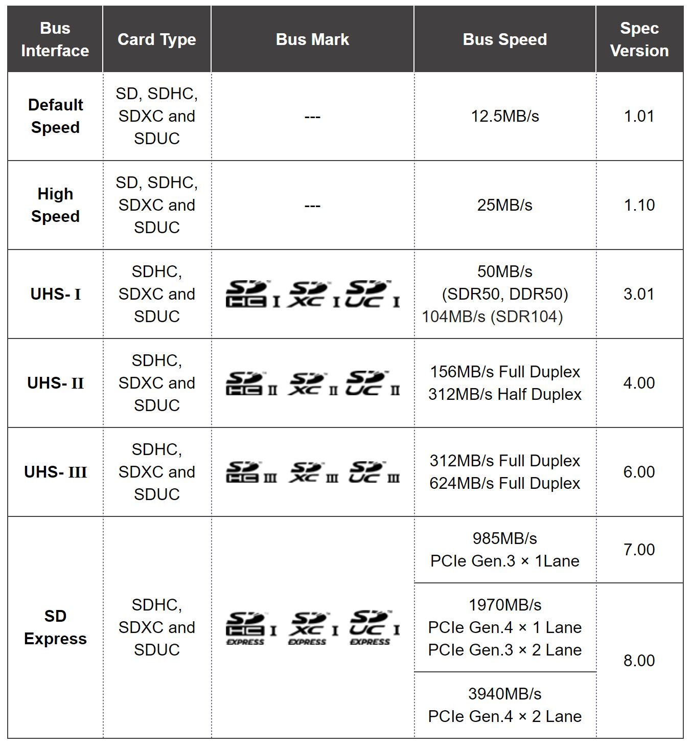 Le consortium SD Association qui développe le format de carte mémoire SD a révélé la toute dernière version de ses cartes hautes performances, les SD Express 8.0. Au maximum de la norme, le bus de transfert des données des cartes atteindra la vitesse fulgurante de 3,94 Go/s grâce à l’utilisation de deux lignes PCI Express 4.0.