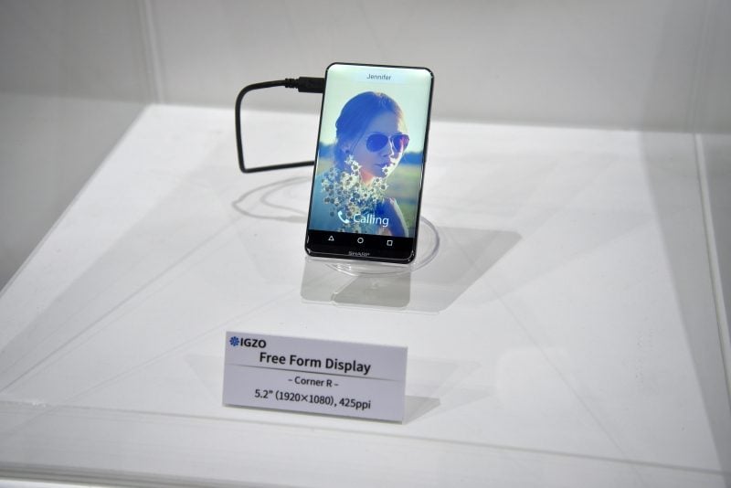 Le smartphone de Sharp utilise la technologie Free-Form Display qui permet de découper des dalles d’écran IGZO (Indium gallium zinc oxide) dans de nombreuses formes. Le constructeur a également démontré un écran IGZO de 2,8 pouces offrant une densité de 1000 points par pouces, soit une définition de 1920 x 2160 pixels, et destiné entre autres aux casques de réalité virtuelle. En comparaison, les deux écrans de l’Oculus Rift possèdent une densité de 461 points par pouce et celui du Galaxy Note 7 de Samsung monte à 518 points par pouce.