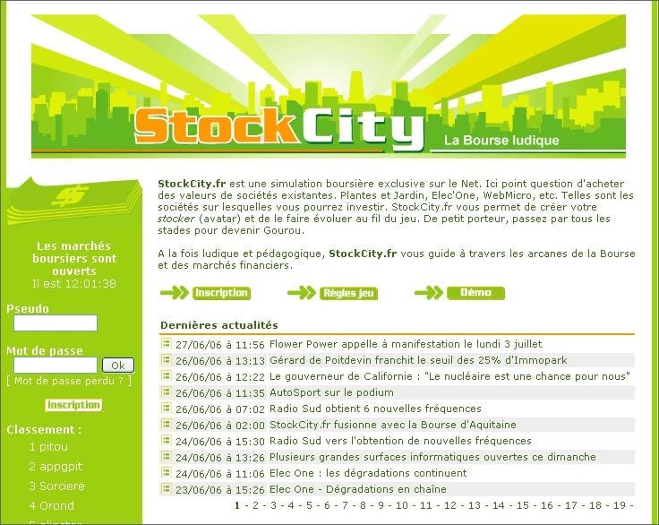 Peur de perdre votre chemise en jouant en Bourse ? Retrouvez tous les frissons du boursicotage sans miser un sou avec le jeu Stockcity. L’inscription, gratuite, vous donne droit à un capital virtuel de 10 000 euros. A