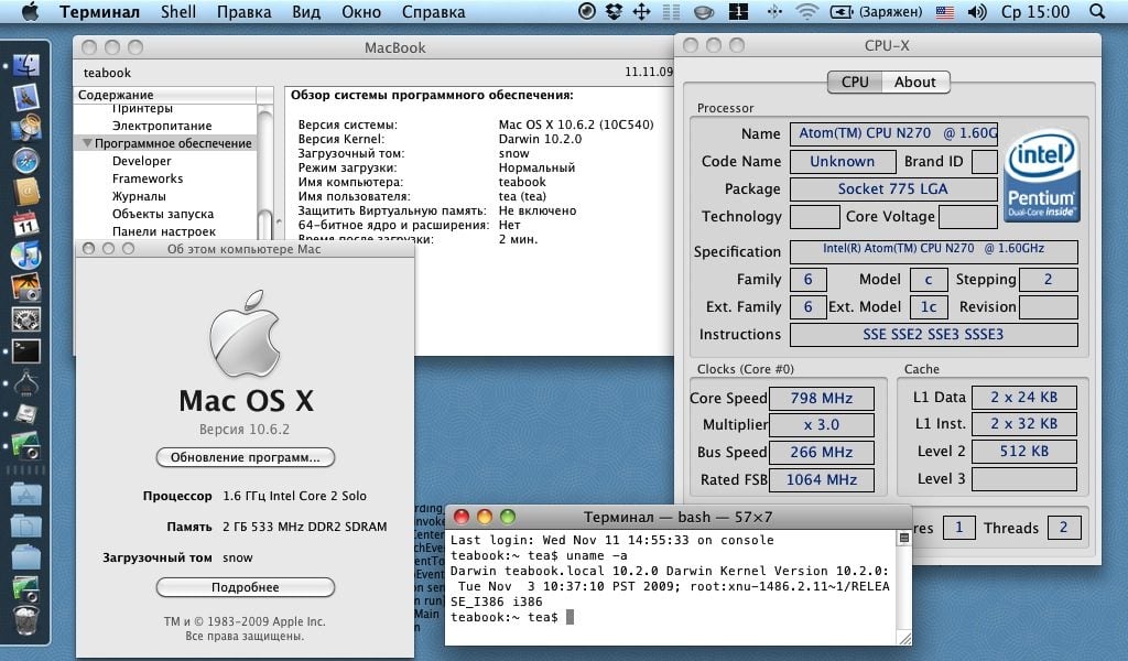 Rebondissement deux jours plus tard : un hacker russe, répondant au pseudonyme de Teateam, publie sur les forums d’InsanelyMac une méthode pour contrecarrer le bridage d’Apple. Et diffuse une capture d’écran de Mac OS 10.6.2 sur son netbook (voir notre image). Sa méthode, qui a fonctionné chez de nombreux utilisateurs, est cependant loin d’être anodine : elle consiste soit à changer le noyau de Mac OS X, soit à intervenir sur un fichier essentiel à la bonne marche du système (mach_kernel).