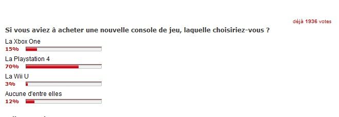 C’est sans doute ce qui a fait basculer nombre de vos votes. 70 % des 1 936 votants ont ainsi déclaré préférer la PS4. La Xbox One ne recueille que 15 % des voix… juste devant ceux qui ne veulent aucune de ces consoles, comme Tyranausor ou Silver84 qui se demande finalement « pourquoi changer ? ».
