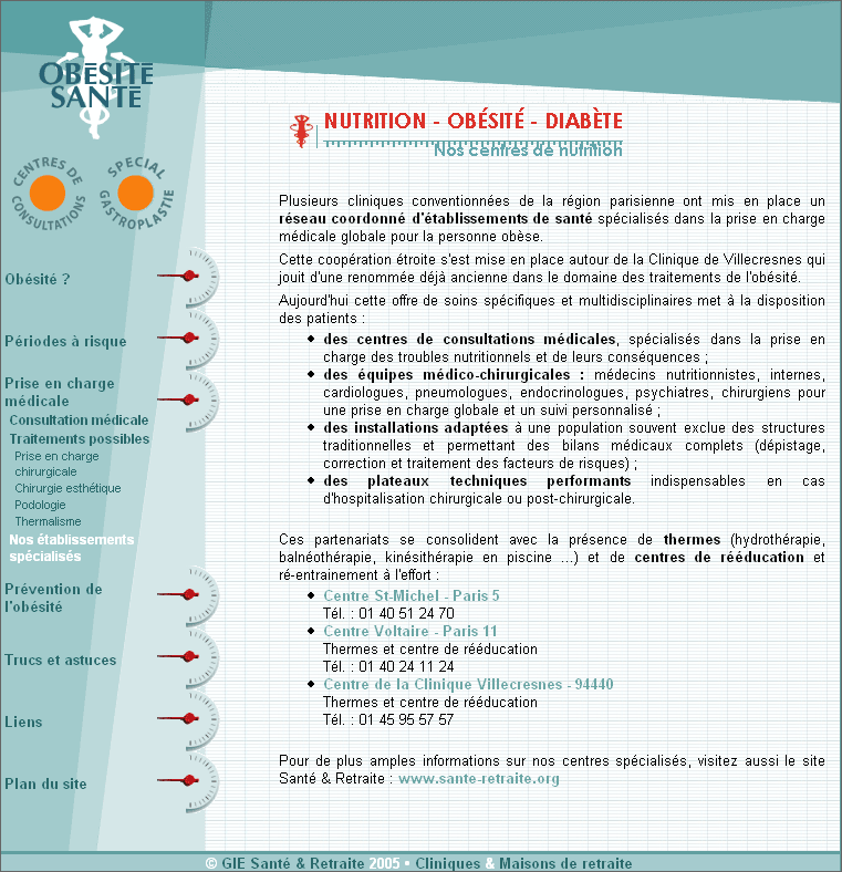sont autant de questions abordés par ce site issu d’un groupement de cliniques et de maisons de retraite. Les aspects médicaux sont assez fouillés, et une rubrique consacrée à l’alimentation rappelle les calories associées aux aliments