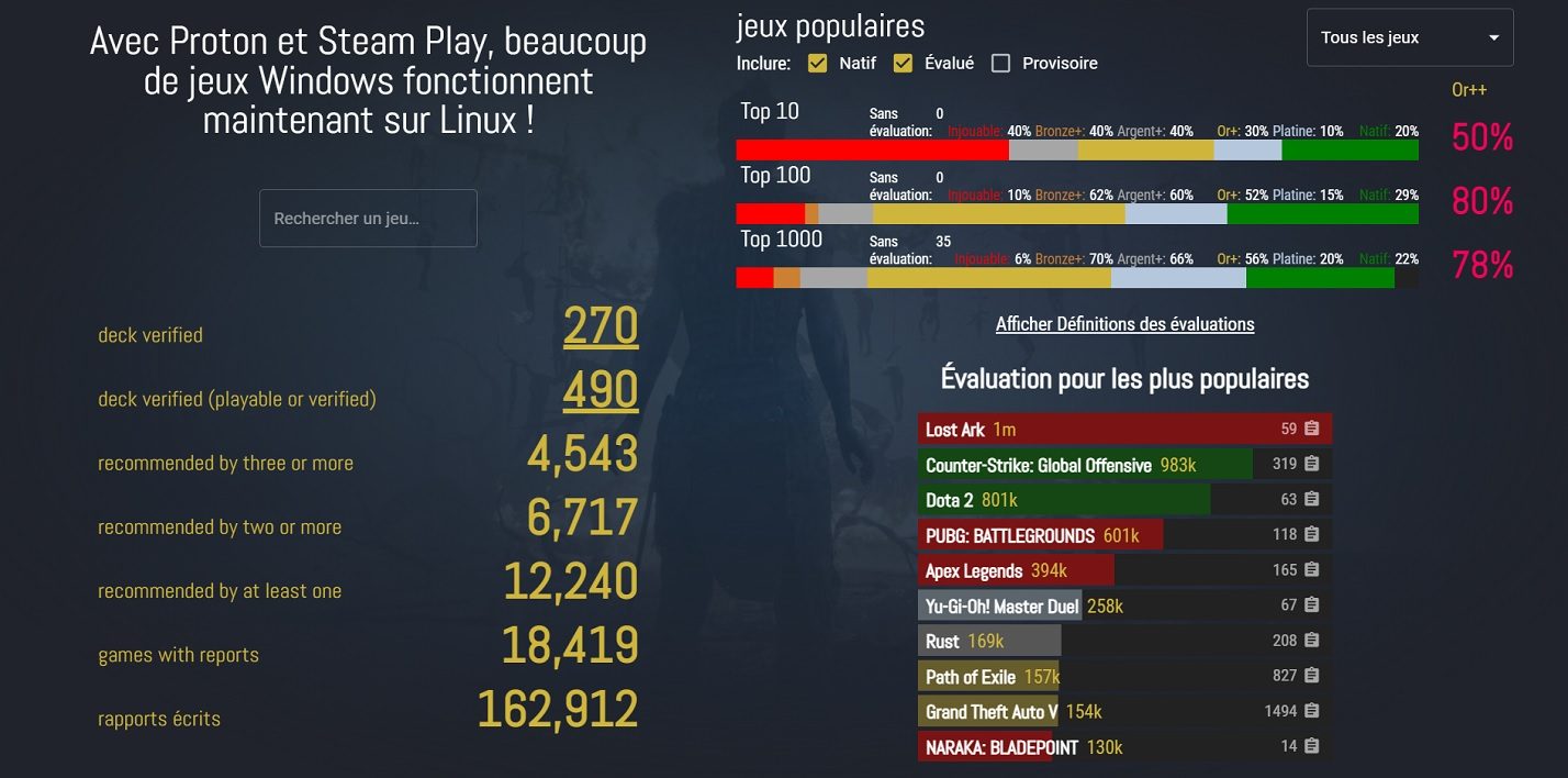 La liste complète des jeux compatibles est consultable sur le site indépendant Protondb.