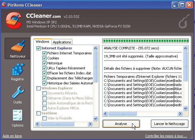 CCleaner 2.02.527 (en français, XP etVista) : il fait le ménage dans Windows