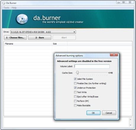 DaBurner est un utilitaire de gravure CD-R/RW et DVD-R/RW d’une simplicité déconcertante. Il vous suffit de sélectionner les fichiers à graver, de cliquer sur « Burn » et de laisser DaBurner faire le reste. L’autre avantage de ce programme réside dans sa légèreté qui vous permettra de l’emporter partout sur votre clé USB.