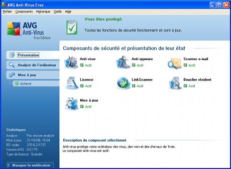 AVG Antivirus Free Edition est une solution antivirus permettant de protéger de façon fiable votre ordinateur et vos données. Légère en ressources et simple à utiliser, l’application propose une protection en temps réel afin de bloquer les virus, vers et trojans en tous genres dès l’ouverture de documents ou le lancement des programmes.