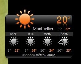 Plus besoin de vous rendre sur des sites de météo pour savoir le temps qu’il va faire, Orange Météo vous l’indique en temps réel sur le bureau de votre ordinateur. Ce gadget s’installe dans votre volet Windows et donne la météo du jour dans le village ou la ville de votre choix, mais également les prévisions pour les trois prochains jours (températures comprises).