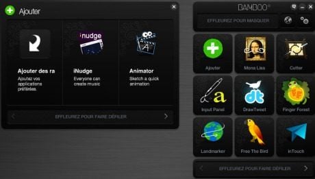 Bamboo Dock propose plusieurs mini-applications ludiques ou pratiques, directement accessibles sur votre bureau et utilisables d’un simple effleurement de souris. Cette plate-forme est originellement prévue pour les tablettes graphiques, mais l’éditeur a adapté ce système intuitif au PC grâce à la souris. Vous avez la possibilité de télécharger et d’installer de nouveaux éléments via la galerie et de personnaliser Bamboo Dock : affichage, langue, nombre d’éléments par page, modules de recherches de nouveaux widgets et de mises à jour. Une quinzaine d’applications sont disponibles pour dessiner (DrawTweet publiera vos œuvres sur votre compte Twitter), écrire (Input Panel est un outil de reconnaissance d’écriture), aller sur Facebook (InTouch), jouer (Cutter, Paper Cakes, Mah Jongg, Finger Forest, etc.), créer des animations (Animator publie vos réalisations sur YouTube) et bien d’autres.