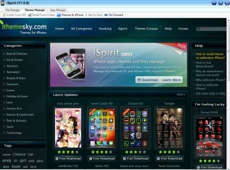 iSpirit facilite la gestion de votre iPhone depuis votre PC Windows. Installez vos applications ou naviguez dans le système de votre téléphone portable en toute simplicité grâce à la prise en charge du “glisser-déposer”. Enfin, téléchargez et appliquez en quelques clics les thèmes sélectionnés depuis la galerie iThemeSky.