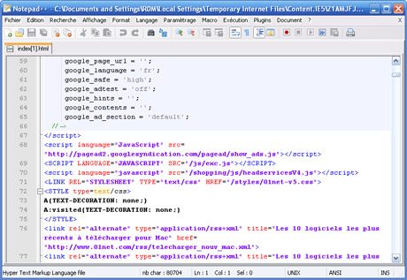 Notepad++ est un éditeur de source avec mise en relief de la syntaxe, et mise en forme de cette dernière. Ce logiciel vous permet également de colorer les mots définis par l’utilisateur. Vous pouvez ainsi imprimer votre code source en couleur. De plus, Notepad++ possède une fonction multi-vues qui permet à l’utilisateur d’éditer différents documents à la fois et même d’éditer le même document en synchronisant 2 vues différentes. Il supporte entièrement le glisser-déposer: vous pouvez déposer le fichier pour l’ouvrir mais également glisser et visionner un document d’une vue à une autre. Ce logiciel fonctionne aussi vite que le bloc-note fourni par MS Windows.