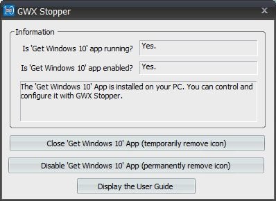 Si votre machine fonctionne toujours sur Windows 7 ou 8, vous avez sans doute remarqué un message s’affichant quotidiennement vous invitant à procéder à la mise à jour de votre PC vers Windows 10. Comme vous n’avez nullement envie de procéder à cette mise à jour, il se peut que cette fenêtre commence à vous excéder. GWX Stopper va calmer votre colère passagère en vous offrant un moyen simple et efficace de supprimer momentanément l’icône de la fenêtre invitant à cette mise à jour ou tout simplement de désactiver définitivement le lancement automatique de l’application au démarrage de votre machine.