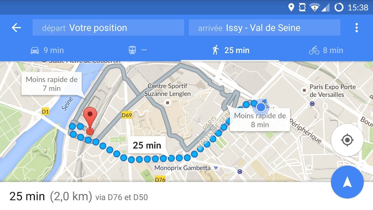 Le géant du web Google a cette semaine dévoilé une nouvelle version de son application mobile Google Maps. Si la mise à jour concerne effectivement les appareils Android et iOS, elle n’apporte cependant pas les mêmes changements d’un système à l’autre. Sur Android, Google Maps passe en version 9.15.0, et se contente d’apporter quelques améliorations d’ergonomie, comme la possibilité de comparer plus facilement les heures d’arrivée prévues entre la voiture, les transports en commun, la marche à pied et le vélo. Par ailleurs, les voyageurs peuvent désormais découvrir les meilleurs bars et restaurants à proximité et bénéficier de recommandations pour les villes de San Francisco, New York et Londres. La mise à jour en version 4.11.0 sur iOS présente les mêmes évolutions et offre même un petit cadeau bonus aux propriétaires d’Apple Watch. Car près de six mois après la sortie de la montre connectée à la Pomme, Google Maps intègre enfin le support de l’Apple Watch et vous propose d’accéder aux fondamentaux depuis votre poignet. Vous êtes ainsi en mesure d’obtenir des indications directionnelles, configurer un mode de déplacement et paramétrer des liens rapides pour les trajets réguliers. En revanche, il faudra encore attendre avant de voir débarquer cartes et guidage vocal sur votre montre connectée.