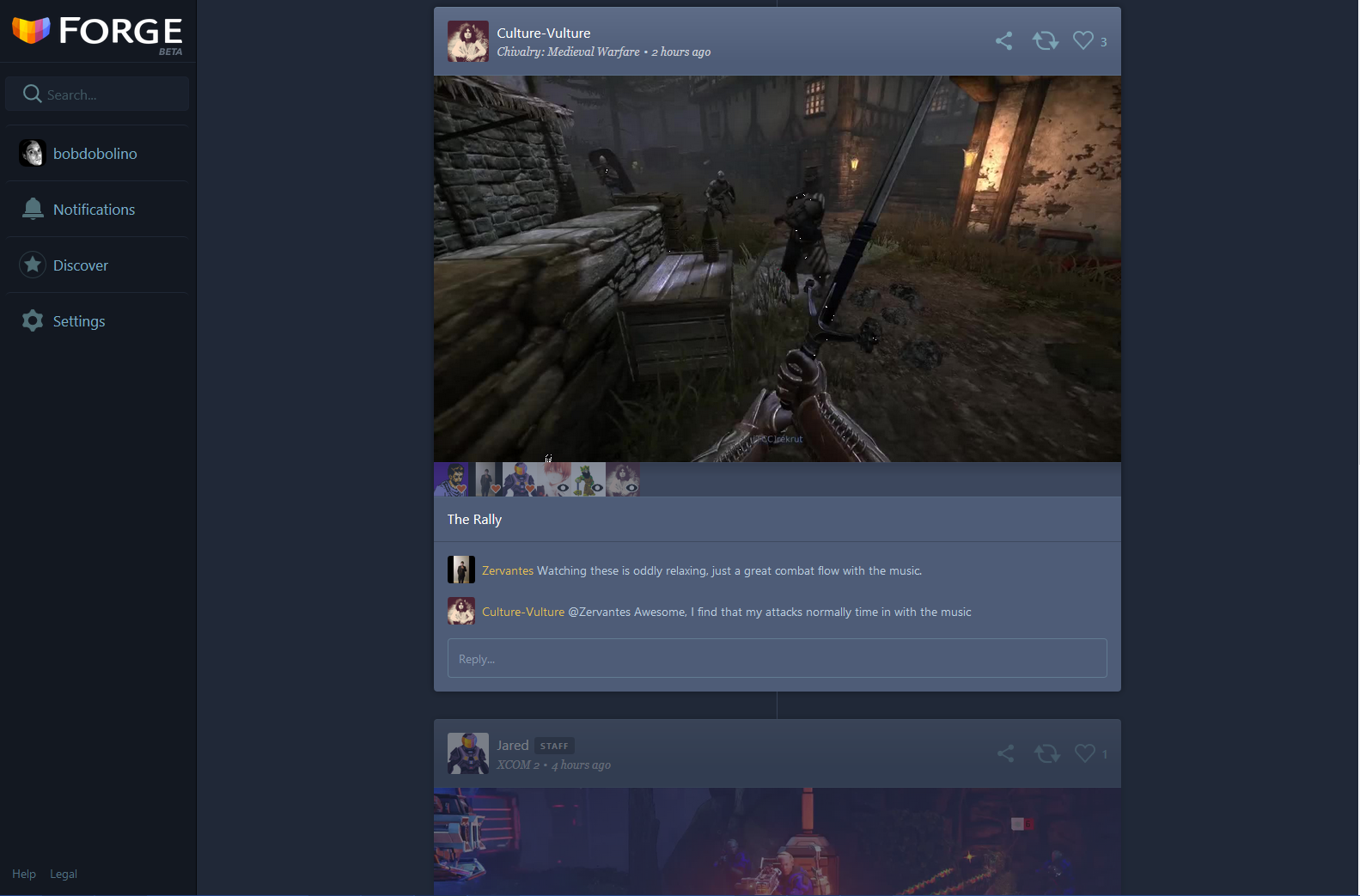 Les gamers trouveront dans Forge une solution dédiée à l’enregistrement et à la diffusion de clips courts des meilleurs moments de leurs parties sur la toile. L’outil est capable de lancer l’enregistrement continu des 60 dernières secondes de jeu sans avoir à quitter la fenêtre du jeu pour en ouvrir une autre. Ainsi, au moment même où vous venez de réaliser une action de jeu incroyable, un simple raccourci clavier vous permet de créer un « replay » en éditant une vidéo courte entre 5 et 30 secondes, issue des soixantes dernières secondes de jeu, que vous pouvez partager directement sur Forge mais aussi sur Twitter.