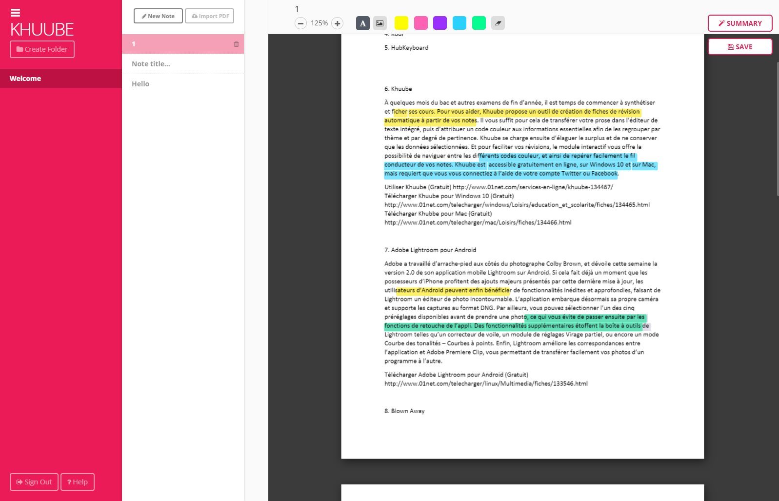 À quelques mois du bac et autres examens de fin d’année, il est temps de commencer à synthétiser et ficher ses cours. Pour vous aider, Khuube propose un outil de création de fiches de révision automatique à partir de vos notes. Il vous suffit pour cela de transférer votre prose dans l’éditeur de texte intégré, puis d’attribuer un code couleur aux informations essentielles afin de les regrouper par thème et par degré de pertinence. Khuube se charge ensuite d’élaguer le surplus et de ne conserver que les données sélectionnées. Et pour faciliter vos révisions, le module interactif vous offre la possibilité de naviguer entre les différents codes couleur, et ainsi de repérer facilement le fil conducteur de vos notes. Khuube est accessible gratuitement en ligne, sur Windows 10 et sur Mac, mais requiert que vous vous connectiez à l’aide de votre compte Twitter ou Facebook.