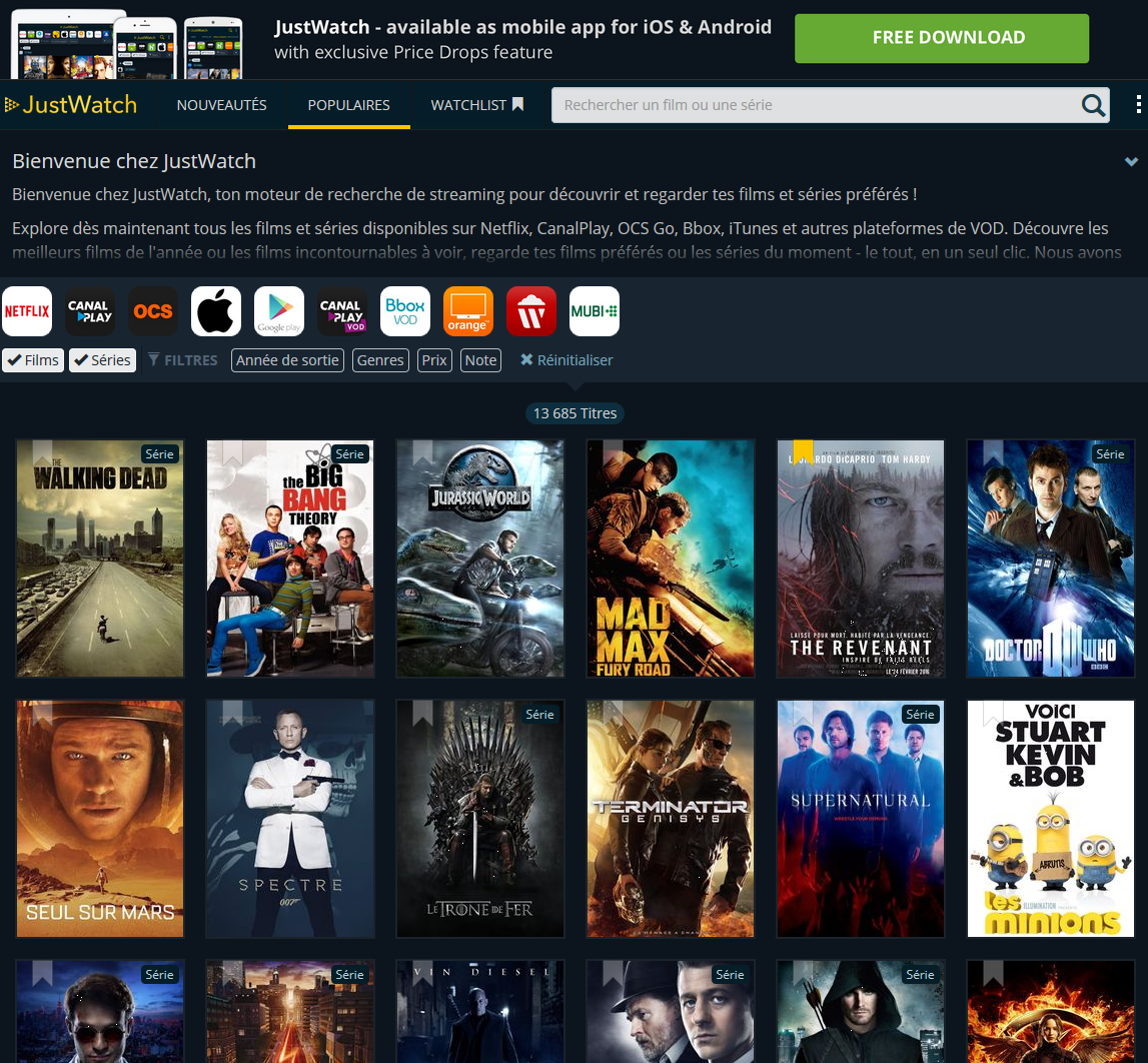 Utiliser JustWatch (Gratuit)