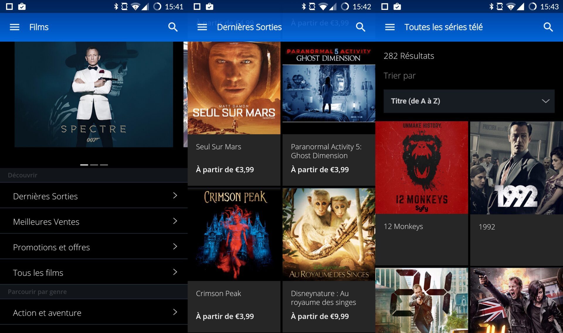 Fort de son service d’achat et de location de vidéos via le PlayStation Store, Sony propose une première version de son service sur le Google Play Store avec PlayStation Video. Jusqu’ici disponible sur TV ou ordinateur, et réservé exclusivement sur mobile aux propriétaires de smartphone et tablette Xperia, PlayStation Video s’invite désormais sur tous les terminaux Android, partant à la conquête du marché de la distribution vidéo sur mobile. Il vous est donc possible de louer ou d’acheter des films ou séries TV via votre téléphone, puis de les visionner depuis votre smartphone, votre PS3/PS4 ou votre PC/Mac. La synchronisation de vos contenus se fait directement via le PlayStation Network afin que vous puissiez profiter de vos films et séries préférés à la maison comme en déplacement. Il est ici bon de préciser que PlayStation Video dispose d’un catalogue audiovisuel plutôt complet et ne se contente pas simplement des productions Sony, aussi bien côté cinéma que côté séries télévisées. Par ailleurs, l’ensemble des contenus sont majoritairement accessibles la veille ou le jour même de leur sortie en DVD pour les films, et le lendemain de leur retransmission concernant les séries.