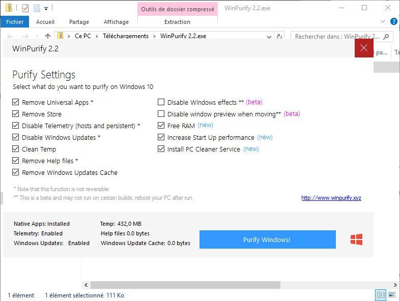Télécharger Win Purify pour Windows 10 (Gratuit)