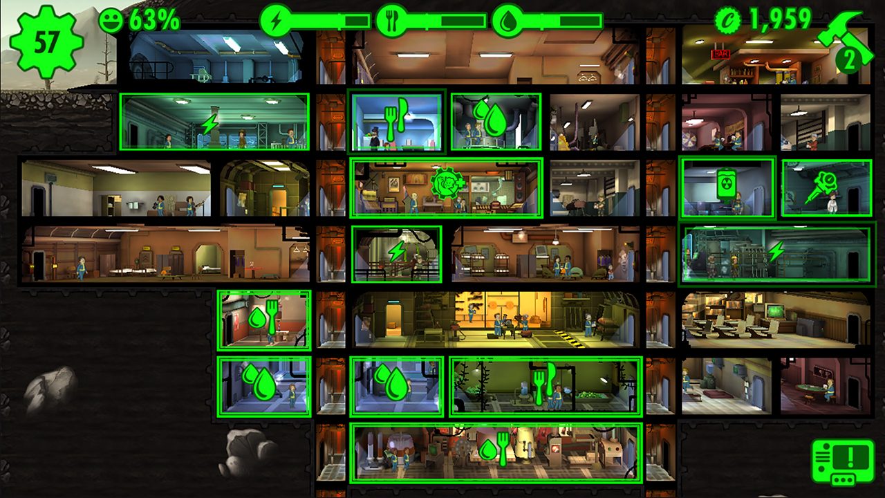 Dans Fallout Shelter, vous prenez le commandement d’un abri antiatomique et faites tout ce qui est en votre pouvoir pour en protéger les habitants après qu’une catastrophe nucléaire a eu lieu. L’objectif de ce jeu de simulation est de faire prospérer votre abri et de développer une microsociété parfaitement autonome. Pour y parvenir, attirez de nouveaux résidents, prêtez attention aux capacités et aux désirs de chacun, et ne vous laissez en aucun cas déborder. Fallout Shelter fait également appel à votre sens aiguisé de stratège puisque vous devez sélectionner avec soin les survivants que vous envoyez en surface récupérer des ressources introuvables sous terre, et faire en sorte qu’ils reviennent en un seul morceau.