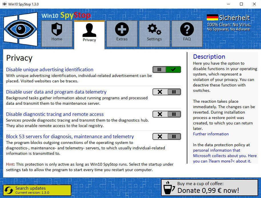 Télécharger Win10 SpyStop pour Windows 10 (Gratuit)