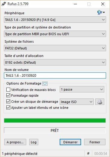 Cet utilitaire est capable de créer en quelques secondes, une clé USB amorçable avec laquelle vous allez pouvoir réinstaller un système propre sur votre ordinateur. Après avoir choisi vos paramètres (type de périphérique, choix du type de partition, système de fichier, etc.), un clic suffira pour lancer la création du périphérique démarrable.