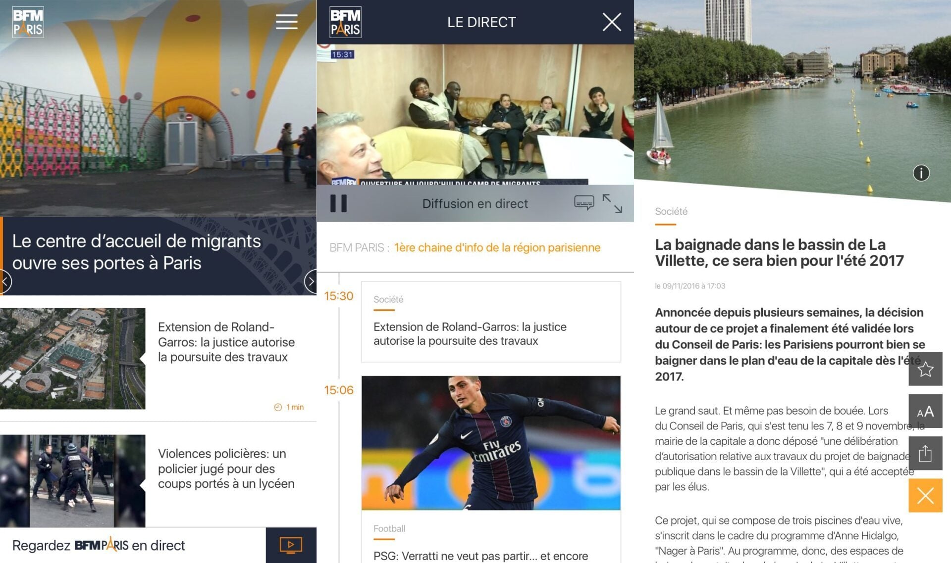 BFM Paris est l’application officielle de la chaîne de télévision locale lancée la semaine dernière. Elle permet de suivre en temps réel l’actualité de Paris et de toute l’Île-de-France depuis votre smartphone. BFM Paris vous propose d’accéder à l’essentiel des dernières informations sélectionnées par la rédaction de BFM Paris, mais aussi de visionner le Live TV en haute définition de la chaîne diffusée sur le canal 30 de la TNT en région parisienne tout en consultant les actualités du fil d’info. Un service d’alertes info est aussi intégré pour être tenu au courant en premier des dernières infos locales.