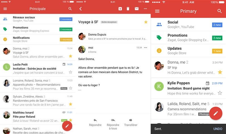 Désormais plus fluide et plus rapide, Gmail pour iPhone n’oublie pas de faire la part belle aux nouvelles fonctionnalités. Il est aujourd’hui possible d’annuler l’envoi d’un message d’une simple pression sur l’écran, et ainsi d’éviter des situations parfois embarrassantes. La recherche connaît également quelques améliorations et bénéficie des suggestions en temps réel pour gagner quelques précieuses secondes. Autre grande nouveauté : Gmail pour iPhone intègre le support de balayage de l’écran pour archiver et supprimer des messages.