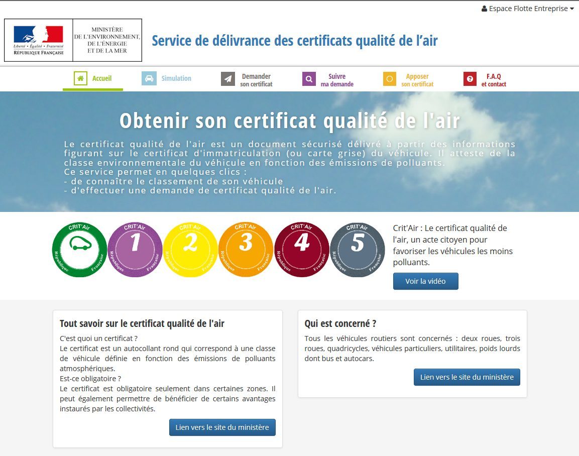 Commander sa vignette CRIT’Air (Payant)