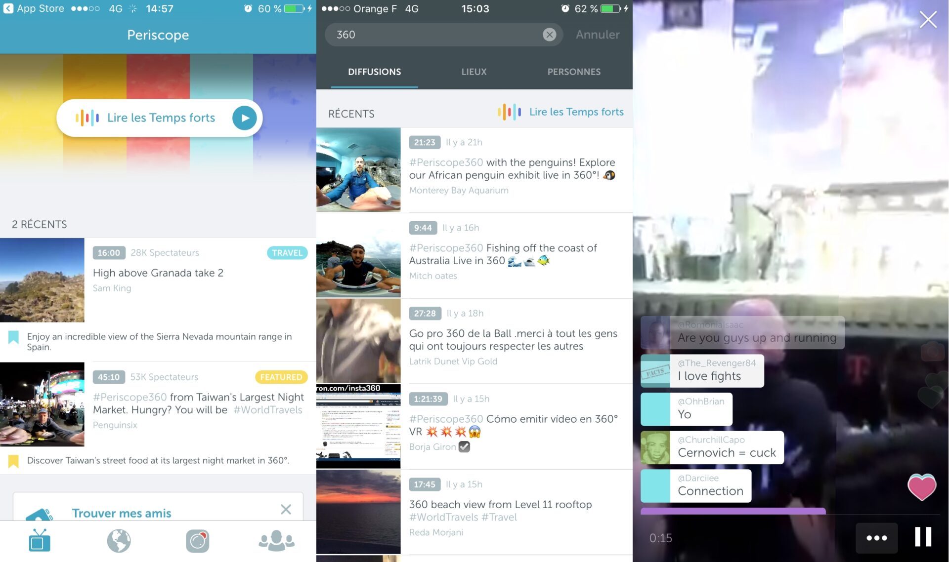 Periscope, l’application de diffusion vidéo en direct vient d’inaugurer une nouvelle fonction : la vidéo en direct à 360 degrés. Particulièrement immersives, ces vidéos en direct vous permettent de vous plonger au cœur de la scène filmée. Vous pouvez ainsi vivre en même temps que celui qui film, un concert, une manifestation, une descente en ski, etc.