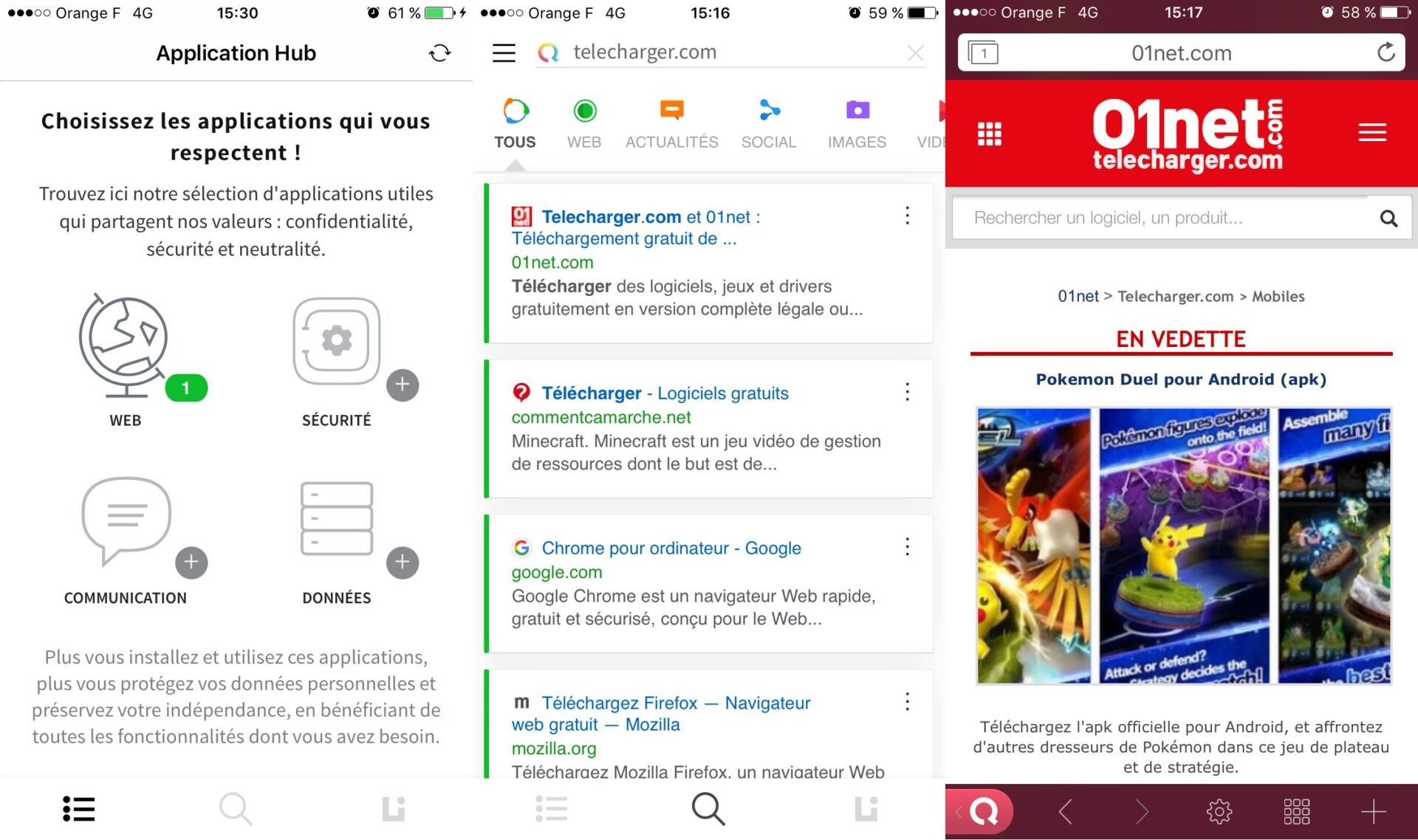 L’interface de l’application est très claire et les recherches peuvent être réalisées pour trouver n’importe quel contenu, comme sur n’importe quel autre moteur de recherche : sites web, réseaux sociaux, images, vidéos, musiques mais aussi shopping, pratique pour comparer les prix. Enfin, Qwant vous permet, via un hub dédié, de choisir des applications qui respectent votre vie privée. Si vous en possédez déjà sur votre smartphone, Qwant en affiche le nombre dans une pastille accolée à chaque catégorie proposée. Vous pouvez ainsi dénicher de nouvelles applications respectant votre vie privée et qui partagent les mêmes valeurs que Qwant.