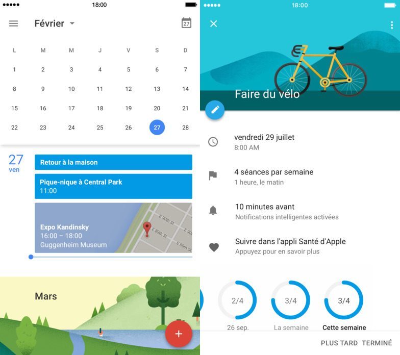 Google Agenda met également à jour sa version Android. Si l’affichage était déjà adapté aux écrans de tablette, l’application profite de ce rafraîchissement pour lier votre calendrier à Google Fit. De la sorte, vos objectifs sportifs sont automatiquement synchronisés, et les horaires de séances à venir, adaptés. Vous profitez des rappels pour vous prévenir du début de sessions et visualisez aisément vos progrès et évolutions.