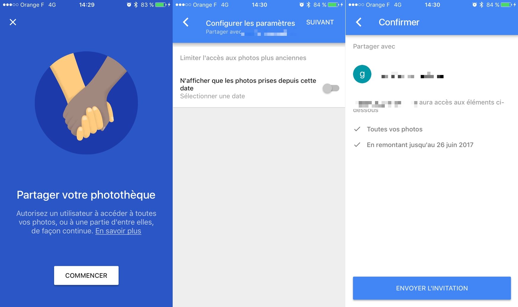 Désormais, Google Photos vous permet de paramétrer le partage de votre photothèque avec un tiers, en saisissant son adresse mail. Plusieurs options sont d’ailleurs possibles pour la partager. L’utilisateur a en effet le choix de laisser libre accès à la totalité de sa photothèque, mais peut également limiter l’accès aux photos les plus anciennes en n’autorisant l’accès qu’aux photos enregistrées à partir d’une date précise. Notez qu’une fois ce partage autorisé, toutes les photos que vous prendrez et qui se retrouvent synchronisées sur Google Photos sont aussi visibles par ce contact.